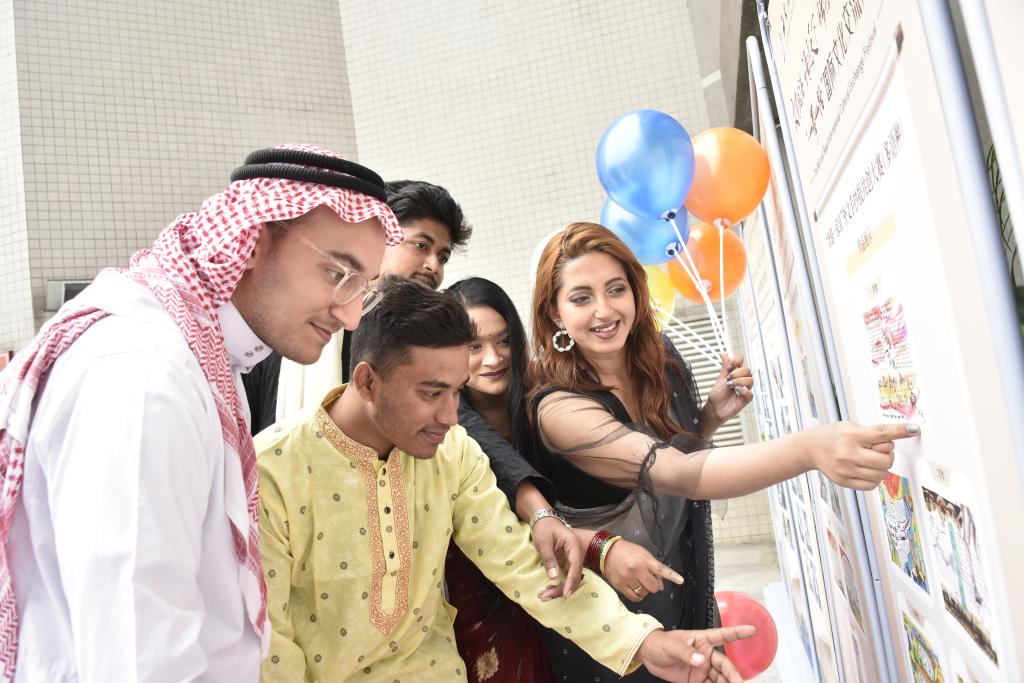 场外的交流月风采展示区同样“圈粉”无数。英文、俄文、日文、法文等多语种文字创作的海报、手抄报展板作品呈列其中,来往师生纷纷驻足欣赏。从外文书写大赛、外文手抄报大赛脱颖而出的这37幅作品,是由中外学生围绕“一带一路”主题进行创作,内容涵盖习近平总书记“一带一路”金句,国际学生眼中的沿线国家新变化,丝路友谊等。“俗话说‘文以载道’,文字是交流的重要渠道。”2021级学生袁唯茜在欣赏中感叹:“山川异域,情在此间,这些作品传递出了美美与共的交流愿景。”