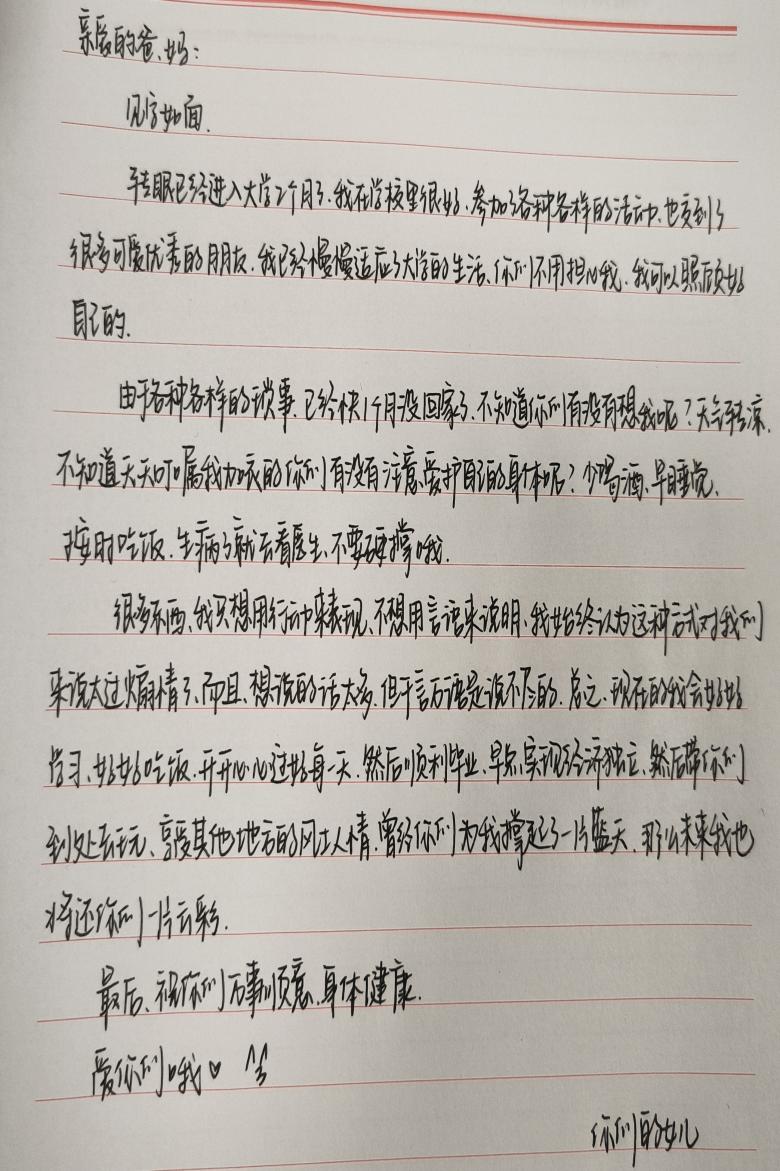 本次系列活动由多个子活动构成,其中“以家人之名”——与心同行,留下美好”活动旨在通过照片和Vlog的方式,记录同学们与家人生活的美好瞬间,聚焦同学们与家人的温馨时刻,为大家提供表达感恩与爱的窗口,促进家庭关系的和睦,让小柚子们养成关注自身与家庭的心理健康的好习惯,保持积极向上的学习和生活态度。其中“以家人之名”——见字如面,展信佳”提供一个向家倾诉爱与思念的窗口,鼓励小柚子们勇于向家人表达自己的爱,以书信的方式增强同学们与家人们的沟通理解,走进彼此的内心,让同学们能更加大方的向家人表达自己的爱意,通过家人的心理教育更好的提升自己。