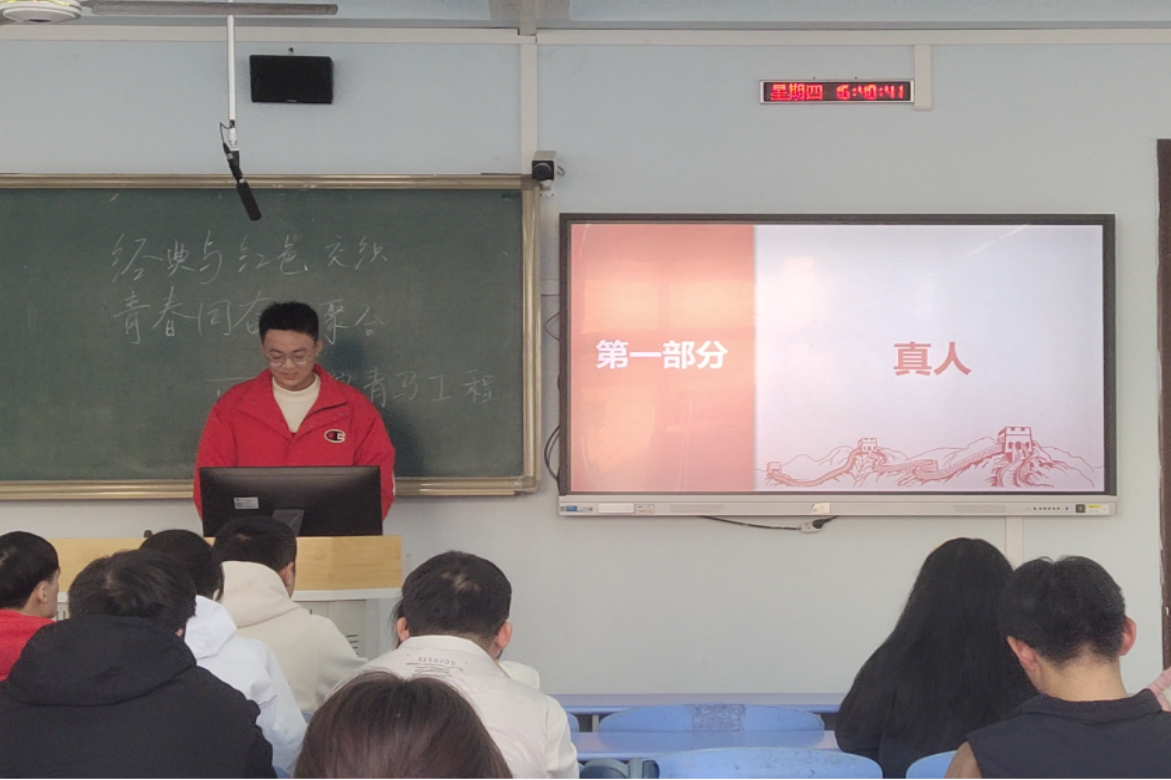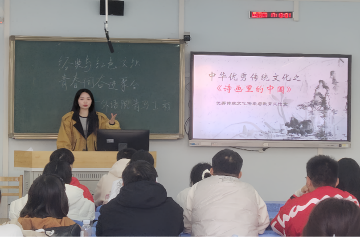 习近平总书记指出,红色文化是中国共产党领导中国人民在革命、建设进程中创造的先进文化,蕴含着丰富的革命精神和厚重的历史文化。为进一步弘扬革命文化和红色精神,同时帮助同学们学习国学经典,领悟传统文化的魅力, 11月16日下午,外国语学院青马工程骨干班于思学楼C406教室举行“经典与红色交织,青春同奋进聚合”主题培训活动。活动分为传承红色基因和品读国学经典两个部分。