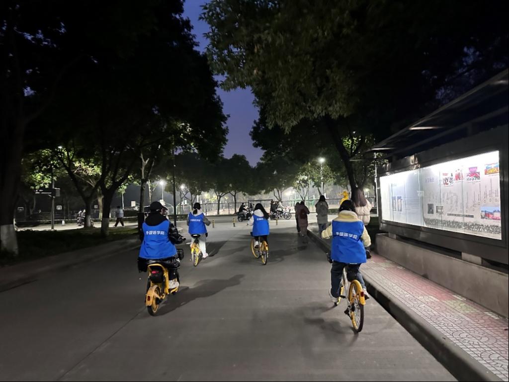 2023年10月5日下午19:30,外语院“青春志愿·你我同行”主题校园骑行清扫活动于西南石油大学校园顺利举行。本次活动由外语院团委青年志愿者协会举办,旨在维护校园环境,提高同学们的低碳环保意识。