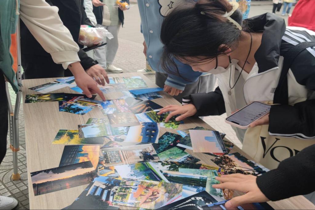 活动现场如火如荼,同学们纷至沓来,欣赏照片中视角奇妙,光影和谐的校园一角。学长学姐则贴心地为同学们布置照片墙,帮助同学们从不同的角度近距离欣赏照片,耐心为同学们讲解照片的拍摄思路与技巧。