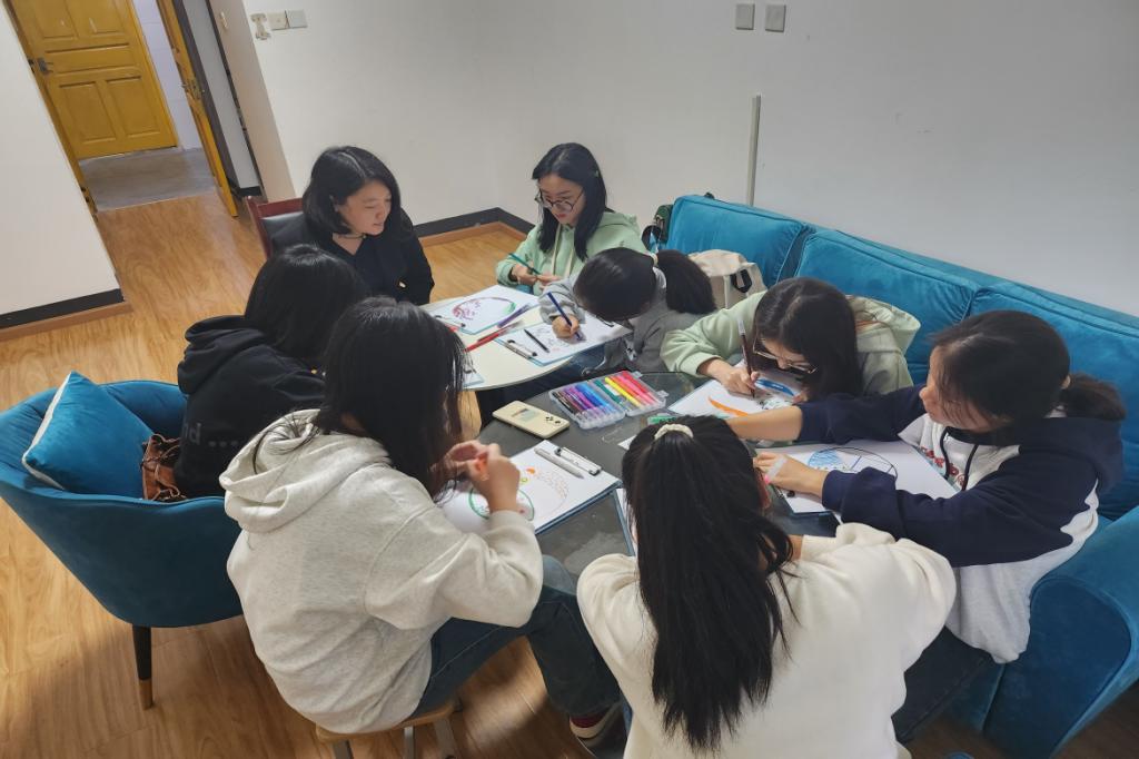 本次团辅活动首先由严鹏部长带领同学们了解此次活动的目的和流程。活动过程中,李春怡同学进行了自我介绍,并向前来参与的各位心理骨干分享学习经验与成长,让大家互相更加深入了解。为了迎合大家想进一步了解成员的心理,我们也开展了曼陀罗解压活动,引导大家在绘画中舒缓心境。最后由卢乙部长对此次分享活动做出总结,并表示期望各位心理骨干发挥心理疏导作用,鼓励其用分享活动等方式加强对班级同学的心理干预。