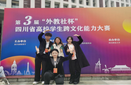 2024年11月9日,由四川省教育厅主办的第三届“外教社杯”四川省高校学生跨文化能力大赛四川省决赛在四川师范大学成龙校区圆满落下帷幕。我校代表队在激烈的竞争中以总分排名第二脱颖而出,荣获一等奖,并将于11月28日代表四川省赴上海参加全国高校学生跨文化大赛国赛的角逐。