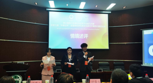 本次大赛由四川省教育厅主办,四川师范大学承办,旨在推动中外文化交流互鉴,促进跨文化交流深入发展。本次比赛经过了校赛,省复赛和省决赛三轮比赛。参加省复赛的35所高校中,包括我校在内的10所经过筛选入围省决赛。省决赛要求各代表队进行知识竞答、情境评述以及讲述中国故事三个环节的比赛。