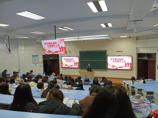 正气如钢不可摧,清廉似水可照人。为帮助新一代青年学子建设清廉党风,凝聚党员力量。12月2日晚,外语院党委副书记、纪委书记周永华在思学楼B210教室开展以“坚守廉洁底线、创造美好人生”为主题的党风廉政建设专题党课,学院党员、入党积极分子参加学习。