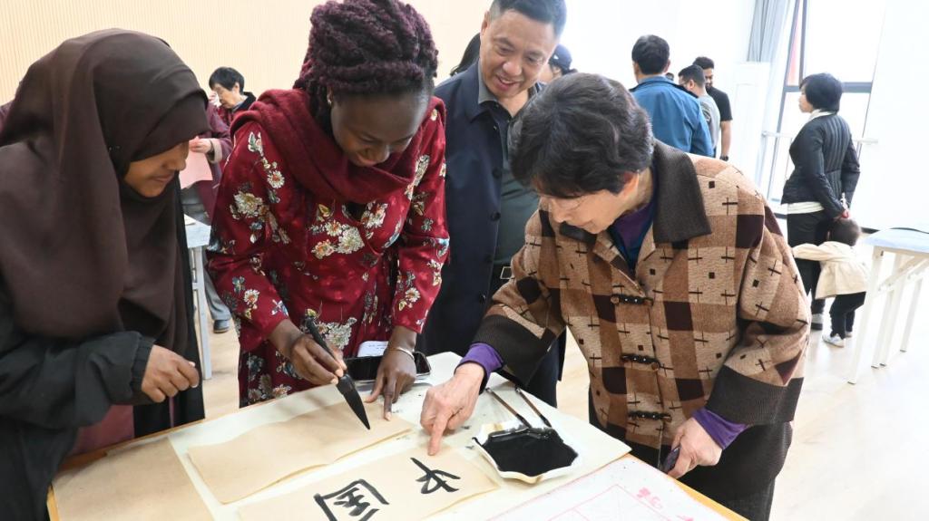 开幕式结束后,嘉宾与观众观摩了获奖书法作品并参与书法交流活动。参展作品涵盖中、英、俄等多语种创作,既有传统诗词的笔墨神韵,亦融入了现代语言的创新表达,展现了书法艺术的多元生命力。书法交流活动现场,吸引了不少留学生参与学习交流,他们用书法文字,表达了对中国和中国人民的美好祝福。