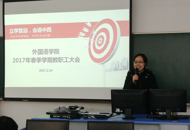 2月25日下午3点在思学楼B307,外国语学院召开全院教职工大会,迎接新学期开学。