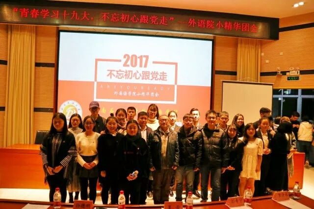 为提高同学们对党的十九大精神的认识。2017年11月23日晚,西南石油大学外国语学院以“青春学习十九大,不忘初心跟党走”为主题的小精华团会于思学楼A114举行。外国语学院党委副书记孙德刚,辅导员罗文双、夏蕾、彭希宁老师,外国语学院学生会主席罗仲林、王熙、黄曦、蒋欣儒以及外国语学院17级全体学生参加团会。