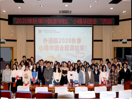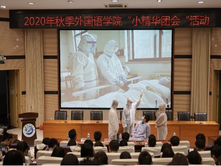 2020年11月12日晚,外国语学院以“同舟共济风雨里,山河无恙国泰安”为主题的小精华团会于思学楼A114顺利举办。出席本次团会的嘉宾有西南石油大学校团委老师罗克维,外国语学院辅导员李飞、安超、王晶,外国语学院学生代表王建成。