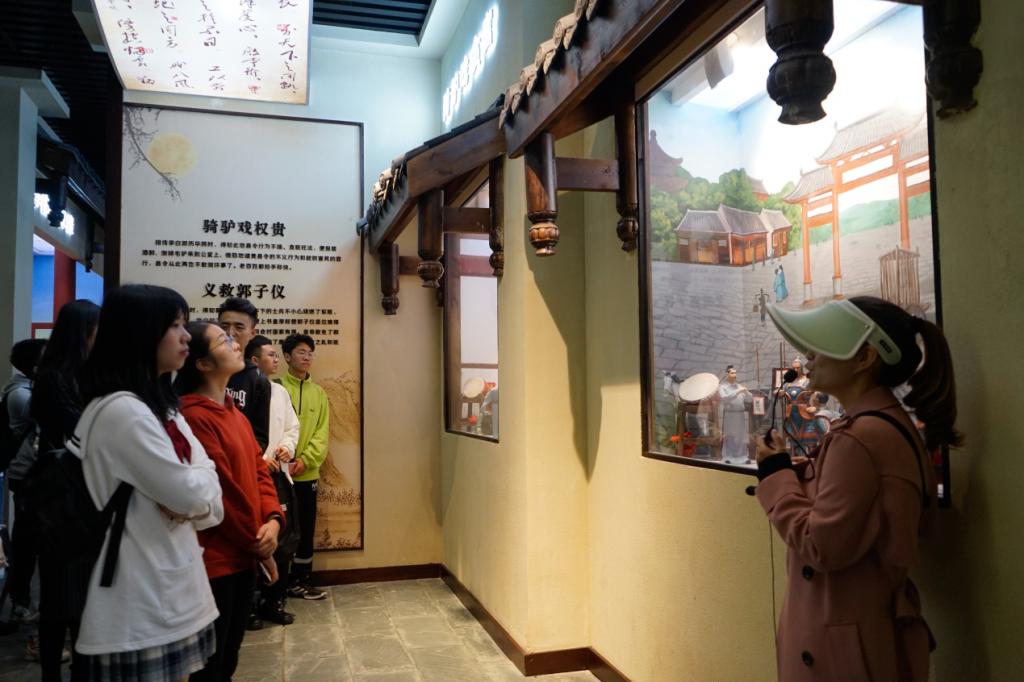 参与研学活动的师生们在工作人员的带领下,依次参观了陇西院、故园山水园、大鹏亭、太白楼、青云梯、首碑广场、故事长廊等景点。在李白故居陇西院中,了解了李白的生平,聆听了少年李白的豪情壮志与鹏程万里。来到故事长廊,师生们聆听了《梦笔生花》《千金买壁》《华阴惩贪》《道子作画》《海上钓鳌》五大民间最广为流传的故事,领略了诗仙李白豪气洒脱的传奇一生。在首碑广场,师生们在众多名师书法中温习李白的诗歌,感受李白诗风的豪迈与奔放。在沉香亭,了解了《清平调》三首的作诗背景,不禁感叹为何杨贵妃之美能千古传颂。登上邀月台,望着李白“举杯邀明月,对影成三人”的巨型雕塑,感受李白的浪漫情怀。站在太白楼顶,举目远眺,青莲诗歌小镇秀色尽收眼底。钟灵毓秀的江彰山水孕育了李白的旷世才华和万丈豪情,成就了一代诗仙的浪漫与传奇。