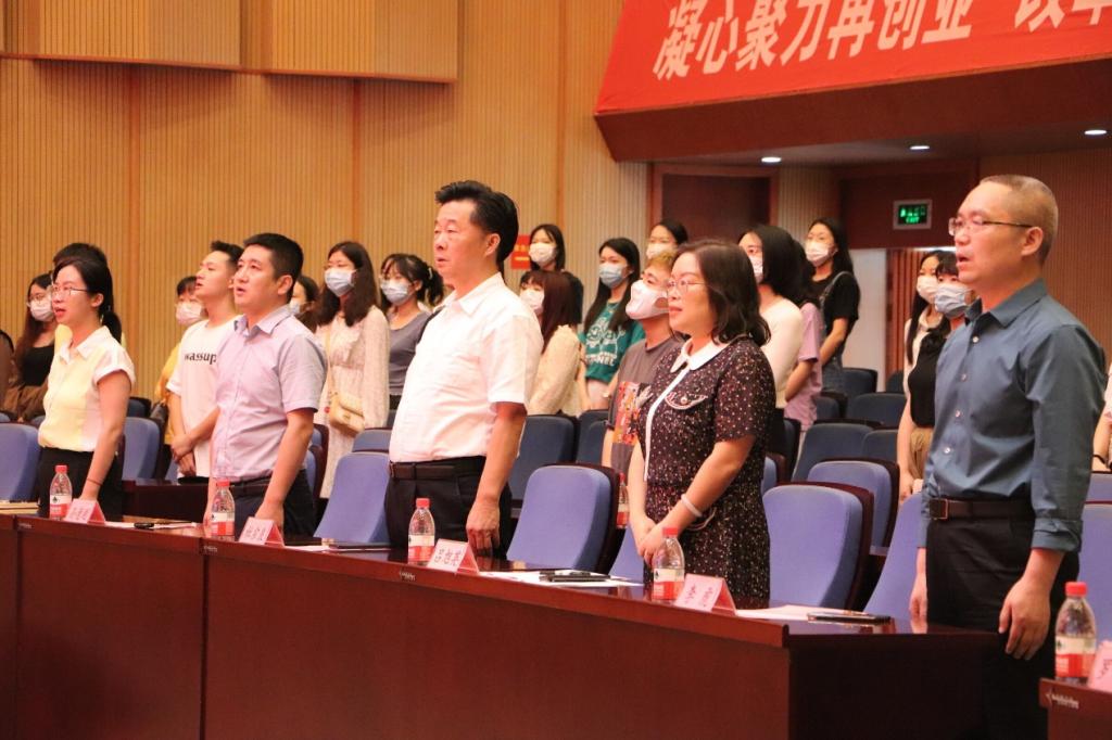 外语院2020级同学献唱一首《Five Hundred Miles》,这首歌旋律里写着流浪,歌词里写着希望,唱出了所有在外求学学子的心声,也拉开了本次开学典礼的序幕。接着进行本次典礼第一项议程——奏唱中华人民共和国国歌。