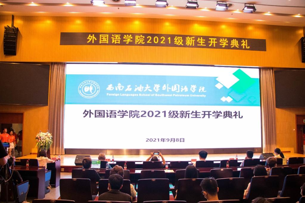 外籍教师Dean Horton在发言里对各位同学进入西南石油大学表示祝贺,希望同学们树立起专业自信和学习兴趣,发现西南石油大学的魅力,发现成都的魅力,发现外语的魅力。优秀毕业生代表吴佳男则在视频寄语中勉励大家热爱外语,努力学习,相信扎实的外语技能一定能带来意想不到的收获。《蓝精灵》、《斯拉夫的故事》两个外语配音秀向各位同学展示了英语、俄语不同的学科特色。而精彩绝伦的话剧表演《渔夫与金鱼的故事》引得全场同学捧腹大笑。老生代表包天乙和新生代表潘文博向大家展示了外语院不同年级同学共有的朝气和自信。