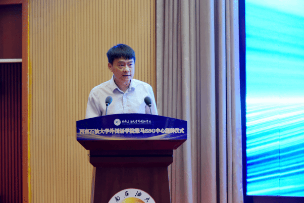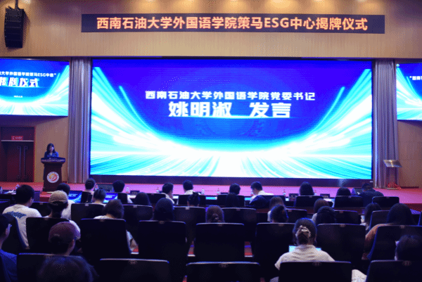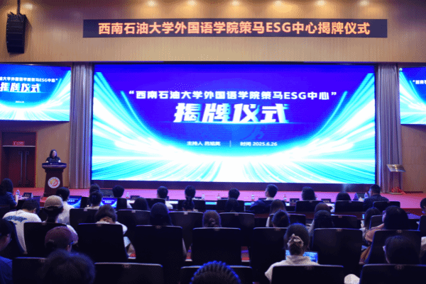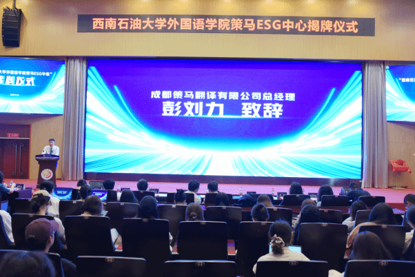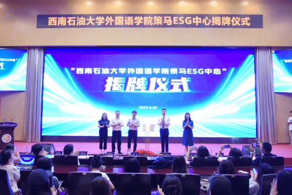 6月26日,西南石油大学外国语学院策马ESG中心(以下简称:中心)揭牌仪式在图书馆学术报告厅隆重举行。学校党委常委、副校长周莹,成都策马翻译有限公司总经理彭刘力代表校企双方为中心揭牌并致辞。外国语学院院长吕旭英主持揭牌仪式。