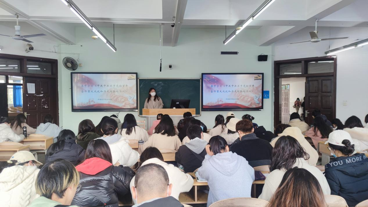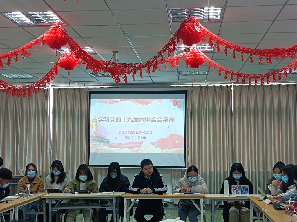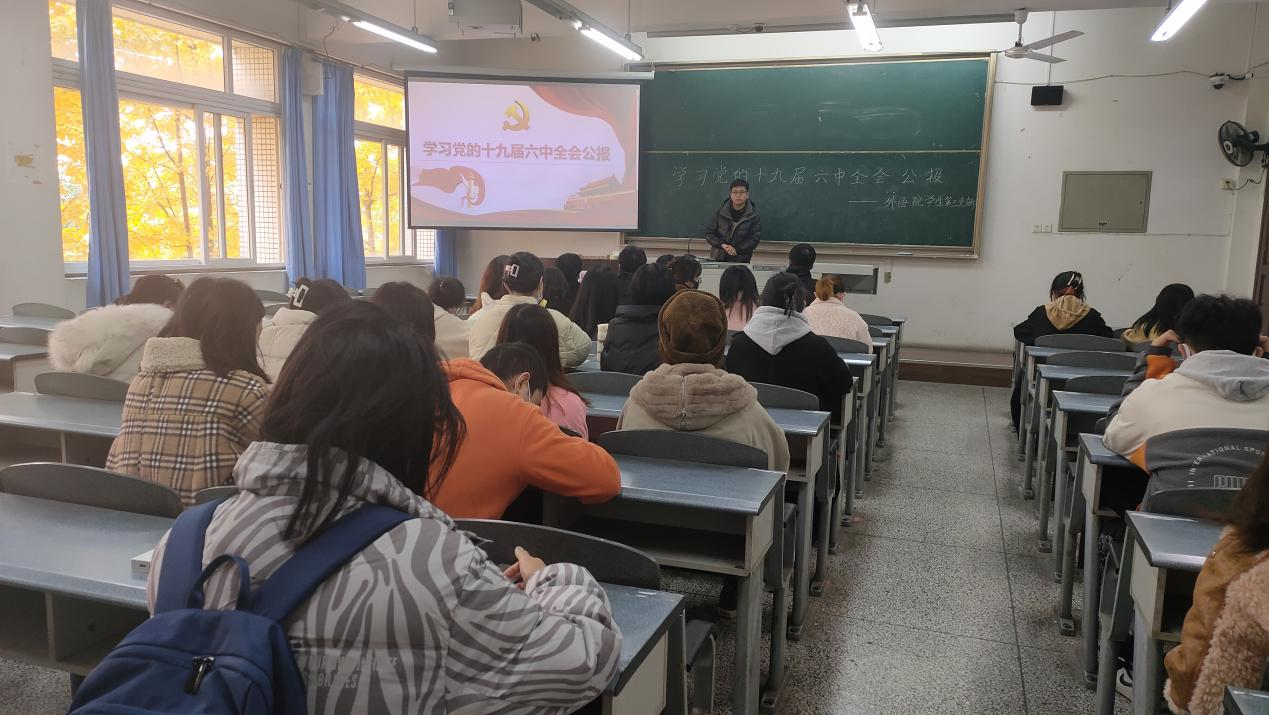 党的十九届六中全会是在党成立一百周年的重要历史时刻,“两个一百年”奋斗目标历史交汇关键节点上召开的一次具有里程碑意义的重要会议。全会圆满完成了各项议程,全会审议通过了《中共中央关于党的百年奋斗重大成就和历史经验的决议》。为深入学习党的十九届六中全会精神,在外国语学院党委的指导下,组织师生充分利用网络等途径收看收听新闻发布会,召开党的十九届六中全会精神专题学习会,全院上下,掀起热潮,反响热烈。