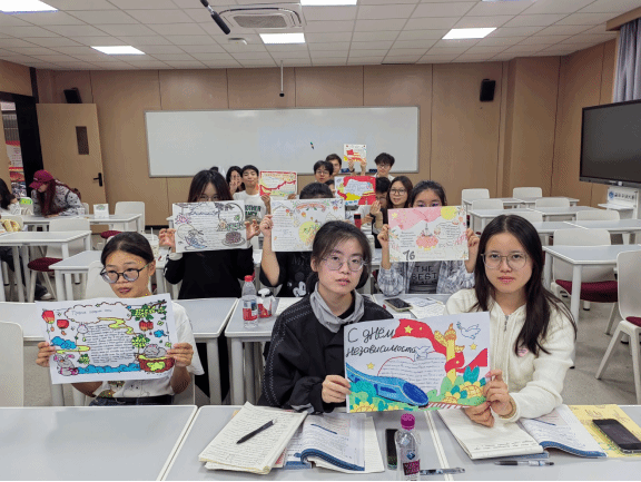 俄语二课教师杨丽新表示,此次活动既是俄语专业实践二课的生动展现,更是一堂鲜活的爱国主义教育课。同学们在创作中深化了文化理解,以双语表达传递对祖国的赤诚热爱与对团圆的真挚期盼,彰显了我院俄语专业学生兼具专业素养与家国情怀的精神风貌。
