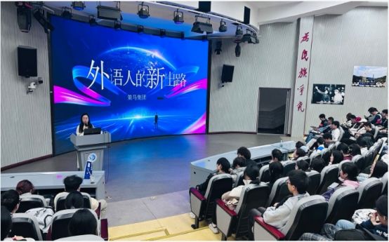 交流会后,郭艳卿老师在思学楼C110为我院英、俄专业本科生及研究生带来了一场专题讲座“外语人的新出路——ESG与外语人才培养”。作为首席可持续发展官(CSO)、天津外国语大学策马ESG产业学院副理事长、策马大学生在线实习公益项目中心常务副主任、教育部“宏志助航”外语类人才就业指导培训班讲师和多所国家“双一流”高校硕士研究生导师,郭艳卿老师精准锚定ESG这一超级交叉学科与外语专业的结合点,系统解读了ESG产业发展前景,深入分析了外语人才在其中的独特价值和竞争优势,清晰指出了我们外语专业的核心能力——跨文化沟通、信息整合与批判性思维——在ESG领域特别是国际合作、标准解读和报告披露中的重要作用。她鼓励同学们拓宽就业思路和视野,将可迁移技能应用于ESG领域,实现个人发展与社会贡献的双重提升。
