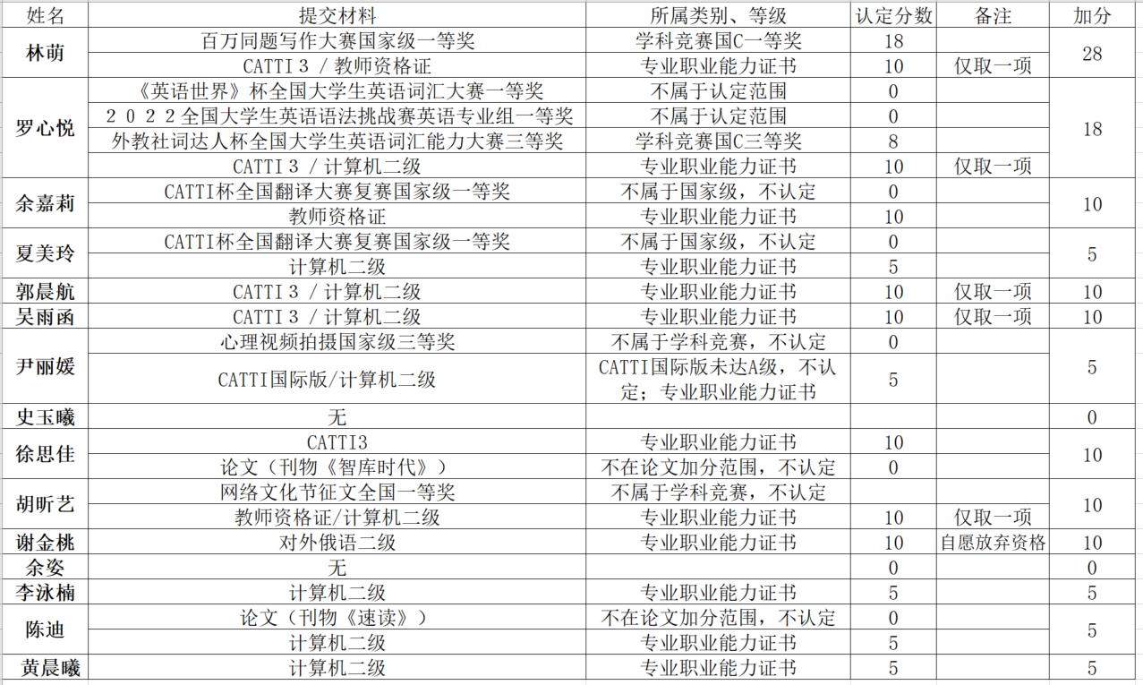 根据《西南石油大学推荐优秀应届本科毕业生免试攻读研究生工作管理办法》(西南石大委发[2020]54号)、《西南石油大学关于在2023届应届本科毕业生中推荐免试研究生的通知》(西南石大教[2022]40号)和《外国语学院推荐优秀应届本科毕业生免试攻读研究生管理细则》,经学生报名申请,学院专家审核小组对其科研成果、学科竞赛获奖、专业职业能力证书等综合能力进行了审查答辩,审查结果如下: