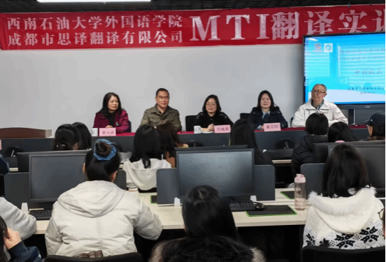 2026年3月11日上午,西南石油大学外国语学院2024级MTI思译特色翻译实训项目开训仪式在公司实训室隆重举行。校企双方领导老师、企业项目组成员及32名参训学员齐聚一堂,共同见证为期6个月的校企合作实训项目正式启航。本次仪式由思译公司行管经理彭丽主持,现场氛围庄重热烈,展现了学院在应用型高级翻译人才培养方面的持续探索与蓬勃活力。