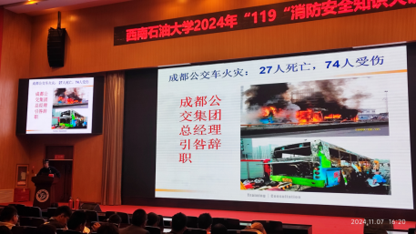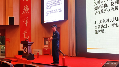 为进一步深入普及消防安全知识,提高实验室人员对火灾的预防和应对能力,确保实验室环境的安全,语言实验与教学辅助中心人员于2024年11月7日下午4点,在图书馆学术报告厅参加了由学校特别举办的消防安全培训活动。本次活动内容丰富,涵盖了消防安全基础知识、实验室常见火灾类型及预防措施、火灾应急处置与逃生技巧等多个方面。