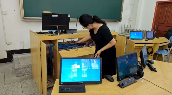 工作人员对语音实验室展开细致排查:语音设备方面,及时联系厂商处理故障设备,确保开学前正常投入教学使用;用电安全方面,系统排查电源插座及线路,全面排除老化、破损和接触不良隐患;通风环境方面,开启门窗保障空气流通顺畅;网络连接方面,联合网信中心排查检修,保障网络稳定运行;卫生整洁方面,彻底清洁实验室所有区域,确保地面、桌面无杂物残留。