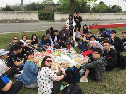 领略过文化的记忆,一行人来到公园,找一片宽阔的草地,围坐在一起,谈天说地,唱一首耳熟能详的歌,分享着彼此带来的小零食,外教带领着同学们做了各种各样的小游戏,互相交流,在尽情嗨玩的同时,英语口语水平也在潜移默化地提高。