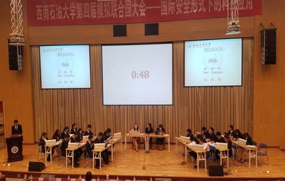 2017年5月12日晚7点 ,在西南石油大学图书馆报告厅中举办了“西南石油大学第四届模拟联合国大会”(后文简称“模联”)的决赛,此次模联的主题为“国际安全形式下的科技应用”。