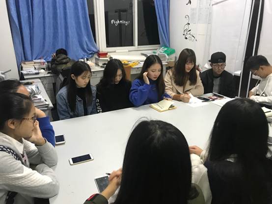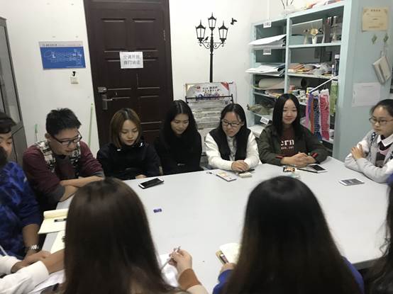 2017年11月17日,“校园之声”外语调频广播电台精彩演讲第三次例会在思学楼B401召开。唐艺部长和魏雪菲部长以及全体精彩演讲委员参加本次会议。