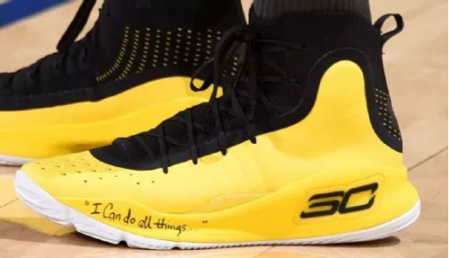 我能做一切!这句话取自著名的圣经4章13节:“我靠著那加给我力量的,凡事都能做。”每次在他上球场之前,他都会在自己的球鞋上写下不同的圣经经文,紧跟着”Warriors Stephen Curry”的首字母“WSC”。库里说:“这是我生命的信条,它每天都在驱使着我。”