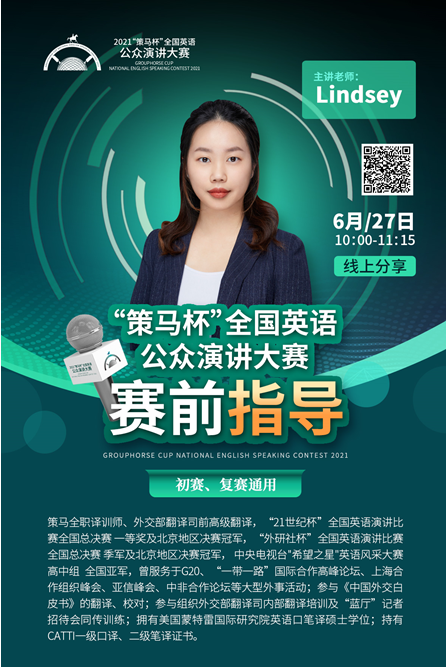 2021“策马杯”全国英语演讲大赛赛前指导 |初赛、复赛通用视频,长按下图扫码。