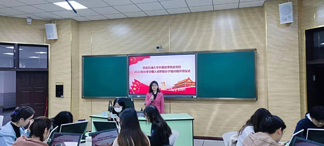 为更好贯彻落实党员发展工作,提高入党积极分子的理论水平和党性修养,我院于2022年11月10日下午在思学楼B106组织召开“外国语学院分党校入党积极分子培训暨开班仪式”。学院党委书记姚明淑、组织员任会及全体入党积极分子参加了本次仪式。本次活动由学生第二党支部书记彭希宁主持。