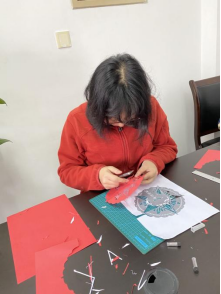 在此次特色支部活动中,各位党员挑选了难度极大的红色主题图案,凭着对党的热爱,带着对党的忠诚,经过两个小时的认真雕刻,亲手完成了一幅幅美丽的刀刻画。活动进行过程中,老师们一边认真雕刻,一边热切交流,在完成刀刻画的过程中抒发着自己的心声,现场氛围轻松愉悦。