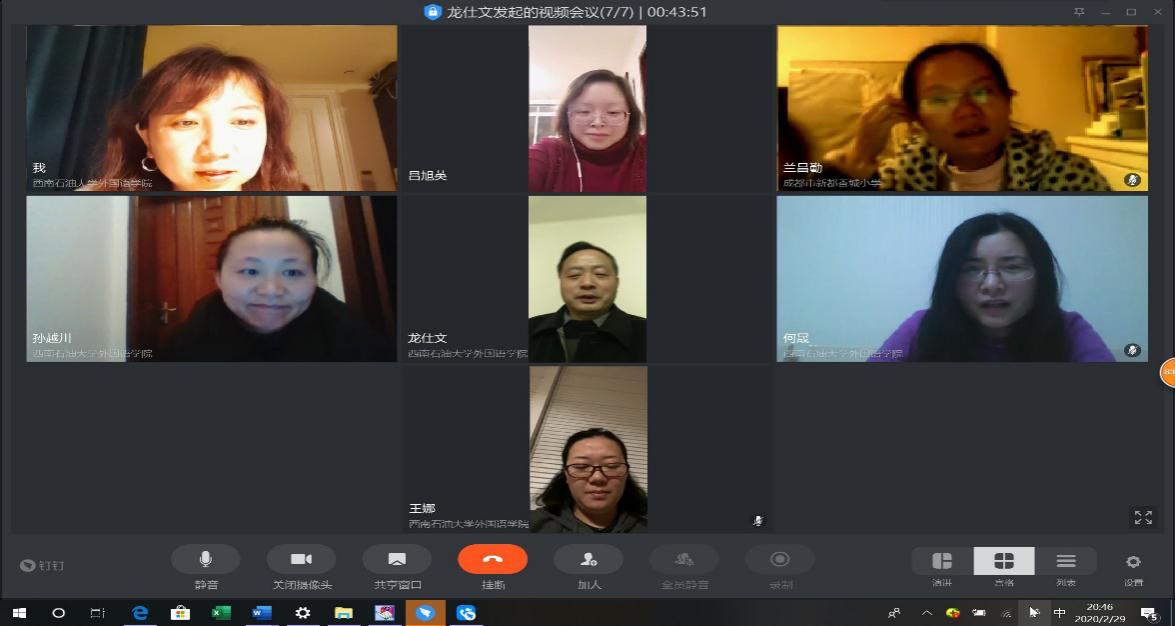 2020年2月19日晚20点,西南石油大学外国语学院英语专业教研室党支部通过钉钉网络视频会议的形式,在线上召开了一次别开生面的党员大会。本次会议以“安守本业,共度时艰”为题,围绕当前疫情态势,立足于教师本职工作,认真学习并探讨了如何在当前困难条件下继续履行好教书育人的重大使命。
