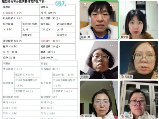 专四专八考试的培训策略也成为会议的重要议题。教研室主任宫磊提到,一些学生在寒假期间积极刷题,而另一些学生则对复习不够重视,这就需要老师们通过多种方式进行督促和引导,确保每位学生都能跟上复习进度。宫磊在发言中还提到,近年来专四的通过率呈下降趋势,特别是从前年的40%降至今年的30%左右,这一现象值得关注。他强调,教学培训不仅仅是为了帮助学生通过考试,更是一个积累经验、共同成长的过程。教师们要与学生一起摸索、总结经验,逐步提高教学水平和学生的考试能力。