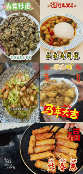从清爽可口的芹菜炒虾仁、春芽炒蛋,到寓意吉祥的炸春卷、芋儿鸡;从暖胃暖心的南瓜芋泥羹、家常水煮鱼,到风味浓郁的咖喱鸡肉饭、煲仔饭…… 一道道菜品色香味俱全,既有家常小炒的烟火温情,也有特色主食的匠心巧思,更有火锅这类团圆盛宴的热闹氛围。教职工们通过短视频、图文等形式,细致记录了从备料、烹饪到成品的全过程,分享食材选择、烹饪技巧与背后的年味故事,让每一道菜都成为承载文化与情感的载体。
