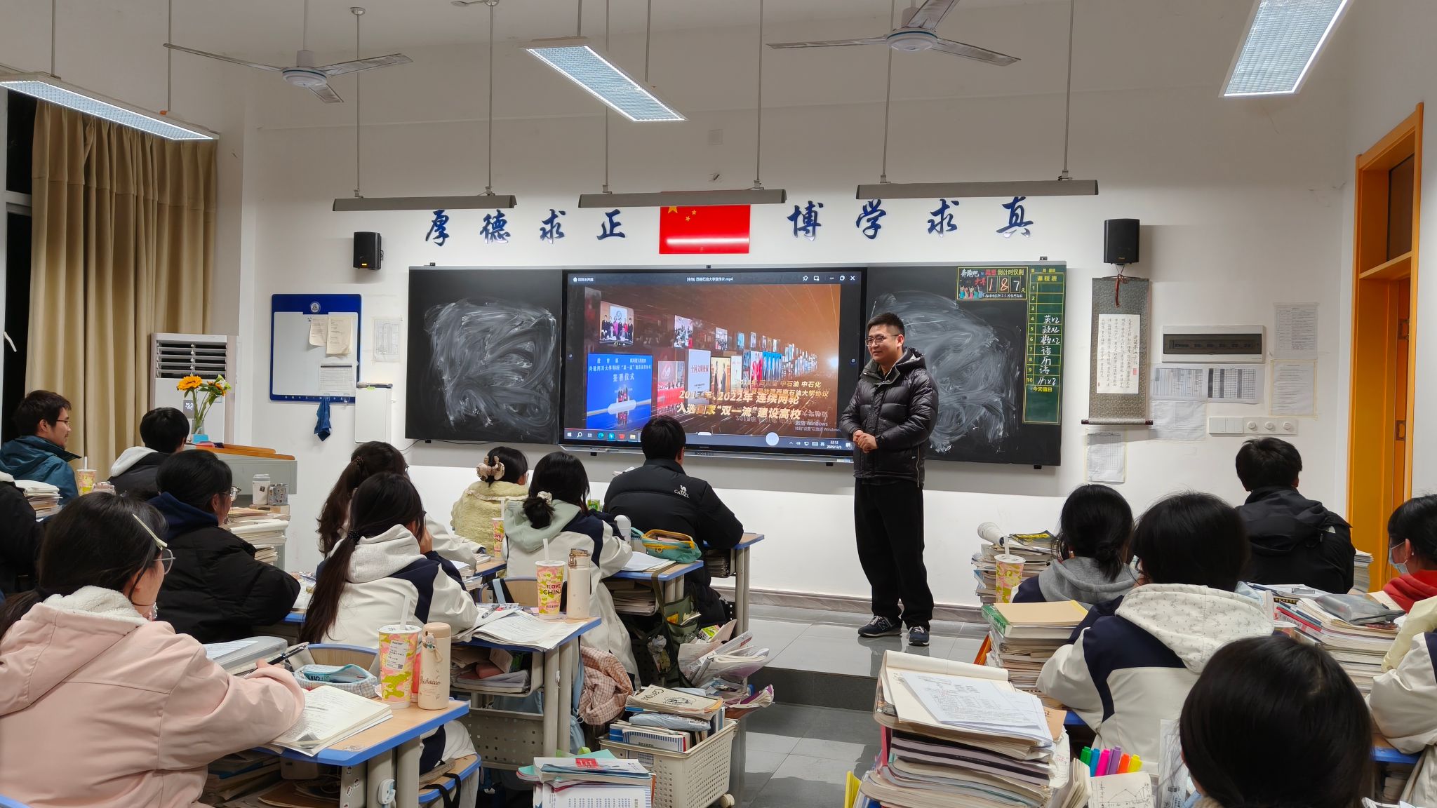 宣讲会上,李飞老师围绕我校的发展概况、办学特色、学科实力以及校园文化环境,向在场师生作了全面介绍。他重点解读了外国语学院的专业设置、人才培养模式、师资力量以及丰富的国际交流与合作项目,并结合外语类专业的学习特点、能力要求和未来发展趋势,为同学们提供了详细的专业选择指导。活动现场,李老师通过播放学校宣传视频、展示图文资料、分享优秀学子案例等形式,生动展现了我校的学习氛围与成长平台。在互动答疑环节,他针对学生们关心的录取政策、大学生活、就业前景等问题进行了耐心细致的解答,现场气氛热烈。