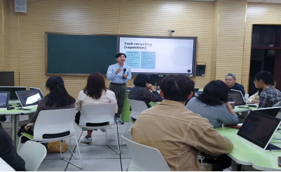 讲座伊始,贝博士给我们呈现了语言学习中实践与重复的重要性。他指出,传统的机械重复可能会让学习者感到乏味,因此设计有趣且有意义的二语学习任务的挑战在于确定重复任务之间的最佳间隔。随后,贝博士给我们详尽介绍了他基于任务间隔对学习者学习表现的影响的研究。该研究以71名成人英语学习者为研究对象,在随机分组后每组须完成一项图片描述任务,并在不同的时间间隔(无间隔、一天、三天、一周或两周)后重复该任务。测量指标包括复杂性、准确性和流畅性(CAF)这三个维度。研究结果显示,任务重复对二语表现普遍具有积极影响。无论间隔长度如何,学习者的表现均有所提升。间隔时间对流利度和结构复杂性产生了调节作用,短时间内的重复(如立即或小间隔)有利于流利度的提升,而在任务间隔为一周时,学习者的结构复杂性和修复性流利度得分较高。