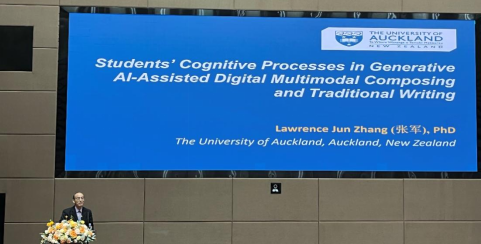 加拿大维多利亚大学Hossein Nassaji教授以“Written Corrective Feedback in the Age of AI: Discoveries, Methodological Challenges, and Future Directions”为题,回顾了书面纠正反馈研究的关键成果,并详细探究了如何利用AI技术来提升书面纠正反馈的教学效果。Nassaji教授对比了以AI为媒介的反馈与人工反馈对学习者语言能力、写作表现、学习态度和参与度等关键问题的影响,为AI辅助反馈带来的挑战提出应对方法,并讨论了该领域未来研究的潜在方向。新西兰奥克兰大学Lawrence Jun Zhang教授带来了题为“Generative AI-assisted Digital Multimodal Composing and Traditional Writing: Students’ Cognitive Processes”的报告。报告聚焦人工智能如何影响学生的多模态写作这一议题,分享了基于该议题的实验研究结果。此外,英国班戈大学GuillaumeThierry教授、美国亚利桑那大学DwightAtkinson教授、美国乔治城大学LourdesOrtega教授,华中科技大学徐锦芬教授也分别从不同的视角,分享了其最新研究成果。
