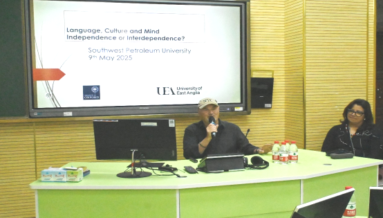 5月9日下午,外国语学院在思学楼B107举办了一场题为“语言、文化与思维——相互独立还是相互依存?”的学术讲座。本次讲座特邀东英吉利大学政治、哲学、语言与传播研究学院名誉教授Chris Sinha和Vera da Silva Sinha博士担任主讲嘉宾,吸引了众多教师和研究生参与。讲座由李虎副院长主持。