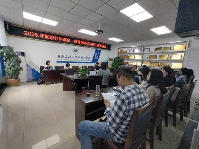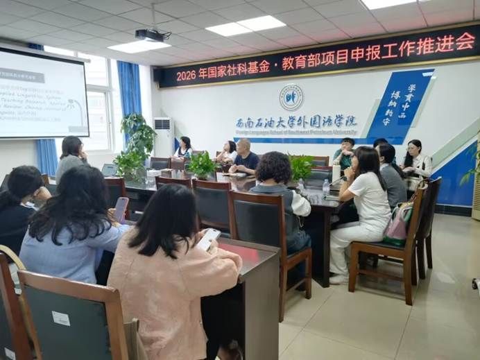 为统筹推进 2026 年国家社科基金与教育部项目申报筹备工作,凝聚博士教师科研力量,明确申报方向与支持需求,外国语学院于2025年10月9日下午16:15 在思学楼AB406 召开项目申报工作推进会。会议由李虎副院长主持,学院全体博士教师参会。