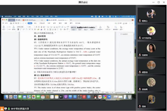 通过此次翻译研讨会,对水电类中文文本的英译有了新的认知,同时也认识到了自己需要提升之处。