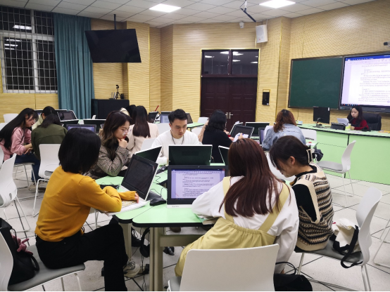 会议开始前,余老师向大家简单介绍了出席的各位指导老师。接着,本次研讨会的主讲人李思扬就翻译过程中遇到的难点和译文中仍存在的问题向参会的老师和同学们请教。老师们先就源文本的题材和特点进行了分析,为同学们毕业论文的写作提出建议,随后余鸿老师组织同学们分组讨论,并轮流汇报讨论结果。本次是汉译英的翻译实践项目,汉英两种语言在语法和文化上的差异给翻译增加了一定难度。各位指导老师和同学们热烈讨论,为译文的优化提供了宝贵的建议。