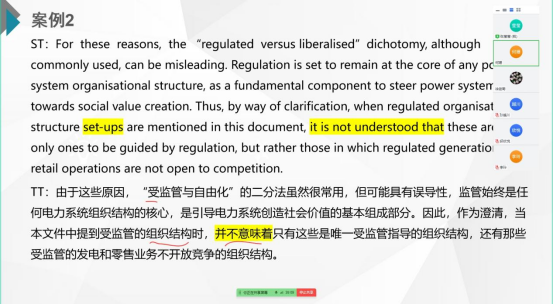 参加这次翻译研讨会,学到了很多翻译技巧,首先是英文代词的处理:英文中代词后面的名词可以省略也可以表达出作者想表达的意思,但在中文中,代词一般只充当前置词,后面需要加上名词,一定要把原文中的代词具体指的什么翻译出来,避免读者不能理解源文本想表达的意思,例1中就把“these”翻译成了“这些组织结构”。然后是情态动词may的处理:may一般意为“可能”,但在科技文本中,要根据源文本表表达的意思来选择用词,例2中的may表示一种能力,一种可以补贴管制的一种能力,所以翻译成了“可以”。最后是有关范畴词的相关内容:汉译英时,必要时候我们可以省略部分范畴词,但在英译汉时,有时可以加上范畴词,以便读者更好地理解源文本的意思,例3中的standardised and regulated只是两个形容词,在英译汉时,加上了“流程”,更加符合中文表达习惯。