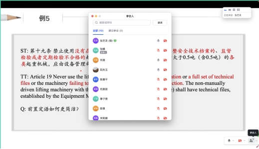 本次研讨主要对原文及译文从词汇、句法两个方面展开,词汇部分包括行业用词、专业术语、中国特色词汇等问题,句法部分包括长定语从句前置、原文句子重复赘述、长句主次、句子重点等问题。我的译文中存在很多问题,而三位老师提供了很多且极具价值的帮助及建议,在老师的点拨下我常有茅塞顿开之感。这次探讨让我也了解到了自己的不足之处,同时收获了不少: