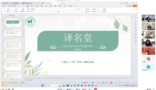 经过此次译名堂,我收获了许多,感谢三位老师以及各位同学的帮助。
