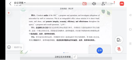 讨论过程:学会灵活变通,“integrity, economy, effectiveness”处理成“诚信度、经济性、有效性”更好,还要注意“integrity”是指“诚信度”还是“完整性”。