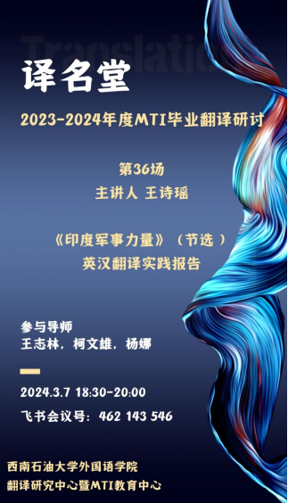 《印度军事力量》(India’s Military Power)是由印度陆军退役中将杜塔将军(Lt Gen HC Dutta)撰写的回忆录,回忆了他过往数载的军旅生涯,同时对印度在过往战争中的表现,以及印度陆军的发展现状进行了评价。本书于2020年由印度新德里市玛纳斯出版社(Manas Publications)出版发行,全书281页,共计8万余字。译者负责本书的第6至8章部分的翻译工作,共计1万5千余字。