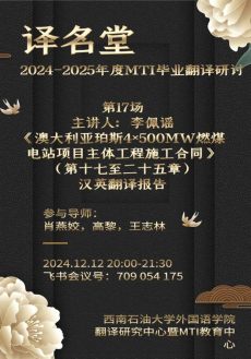 湖南电建集团澳大利亚分公司将与澳大利亚***发电有限公司签订位于澳大利亚珀斯的4×500MW燃煤电站项目的主体工程施工合同。该公司委托成都市思译翻译有限公司将其拟定的中文合同文本翻译为英文。本人在成都市思译翻译有限公司实习期间,参与了该项目的部分翻译工作,合同全文共计25章,本人负责的具体章节为第17-25章。该部分内容包括工程款的计量与支付、竣工验收、缺陷责任与保修责任、保险、不可抗力、违约、索赔、争议的解决、通知及附录等条款内容,共计17000余字。