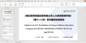 本翻译实践报告源文本Glasgow Railway Operation Company Ltd. HUMAN RESOURCE POLICY MANUAL(《格拉斯哥铁路运营有限公司人力资源管理手册》)为译者在成都思译翻译公司实习期间所参与的翻译项目材料,该文本涵盖了公司简介、手册目标、员工职责等各类与企业内部事务相关的条例,旨在树立企业形象、建立和维护良好的工作环境、规范员工行为、保障员工权益和指导组织运行。