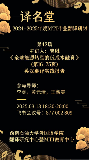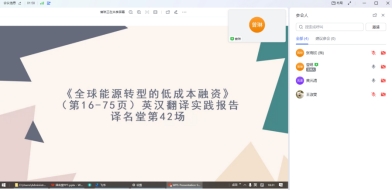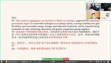 本次研讨聚焦《全球能源转型的低成本融资》英汉翻译中的术语、句法、逻辑及表达优化问题三位指导老师针对译文提供了详细修改意见,使译者对翻译策略有了更深入的理解,并显著提升了问题分析和处理能力。