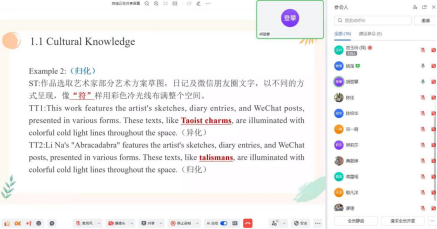 在涉及文化内容的翻译时,归化策略能更好地适应目标读者的阅读习惯,降低理解难度;而异化则有助于传播中国文化,保留原文特色。有几个案例译者采用了归化以便迎合受众需求,老师鼓励译者也可以考虑异化从而有效传递文化内涵。